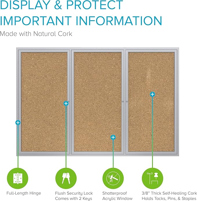 - SECURE YOUR DOCUMENTS: With this locking bulletin board, the doors feature full-length hinges, flush mount locks, and keys for added securityUSA