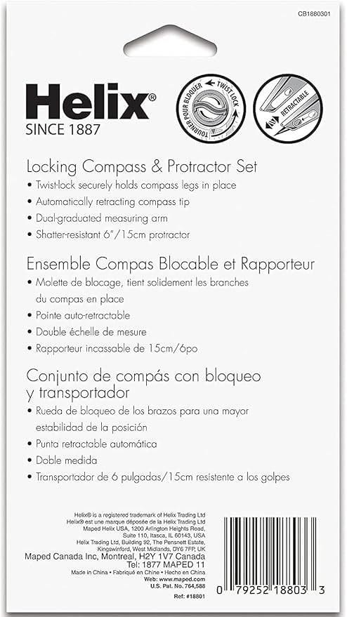 Helix - Plastic Locking Compass and Protractor - 2 Piece Set - Geometry, Drafting & Drawing