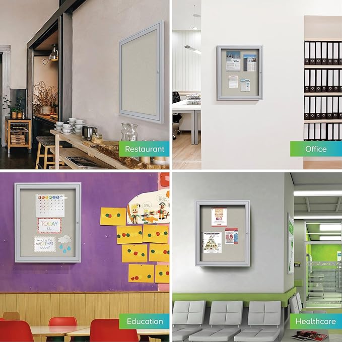 Ghent 24"x18" 1-Door Outdoor Enclosed Vinyl Bulletin Board, Shatter Resistant, with Lock, Satin Aluminum Frame - Ivory (PA12418VX-185), Made in the USA