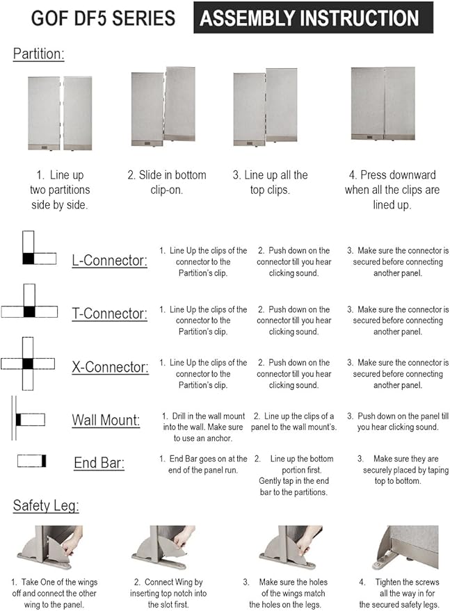 - Includes ONE SET of <36"D x 96"W x 48"H> L-Shaped Freestanding Partition, consisting of One 36"w x 48"h Panel, Two 48"w x 48"h Panels, 2 End Bars & 1 L-Post