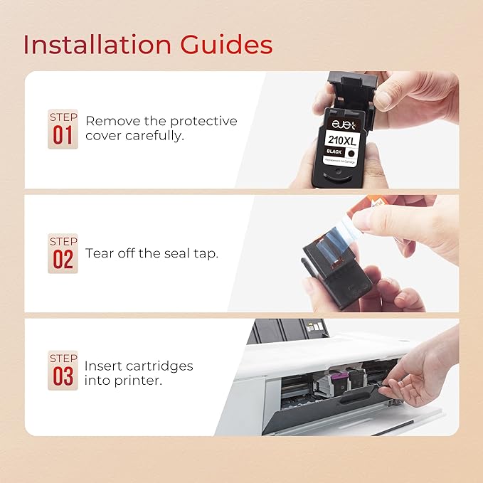 - 210XL Black Ink Cartridge: You will get ejet 210xl replacement for Canon 210xl black ink cartridge (2 x 210XL Black Ink Cartridge, 1 x Comprehensive User Guide)