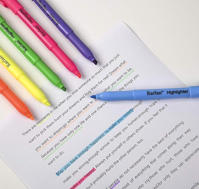 - Narrow chisel tip offers broad highlighting and fine underlining
