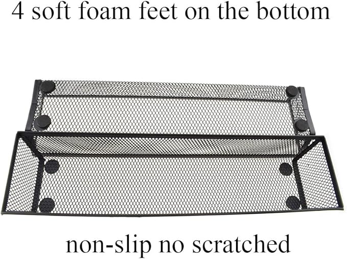 HAHIYO Stackable Mesh Tray Cup 12 x 3 x 2 inches Sturdy Container for Desk Drawer Organizer Collection for Home Office School kitchen Soft Foam Feet No Sharp Edges 2 Pack Black