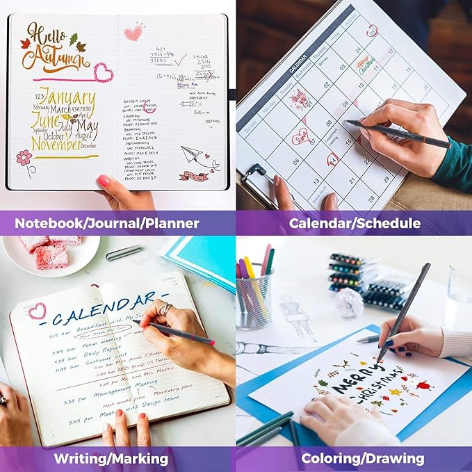 - 🎨SMOOTH WRITING --- Fine tip marker pen set with superfine, metal-clad fine tipped and outstanding performance in all areas of writing, drawing, coloring, easy and comfortable to write. Great for home, office, work, business, colleague, church, club, and organazition activities.