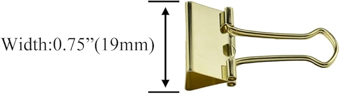 HAHIYO Binder Clips Paper Clamps Spring Steel Sturdy Small 0.75 inches Width 0.2 Inch Capacity No Sharp Edges Heavy Duty Tight Grip Reusable Gold Metal Bright Finish for Home Office School 30 Pack