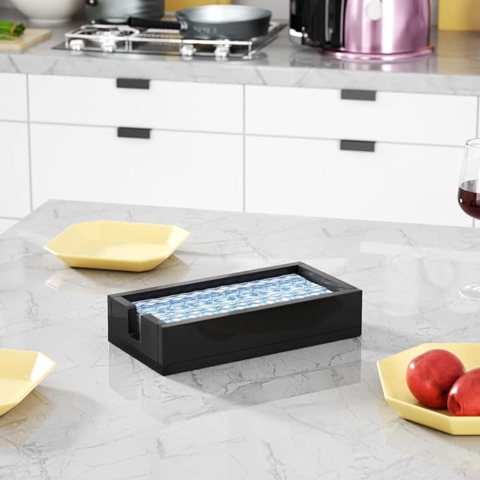 - 【Unique Design】The acrylic napkin holder features a U-shaped opening on the side, making it easy to grab a single napkin without disturbing the rest and keeping them clean and organized. We have also added four anti-slip pads to the acrylic towel holder, making it less likely to slide or fall off the table, and preventing scratches on the table surface.
