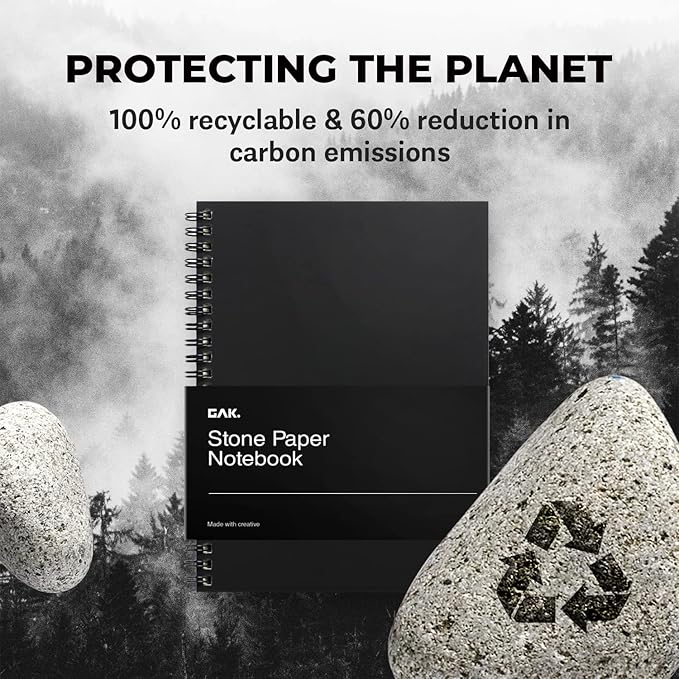 - ECO-FRIENDLY PAPER MADE OF STONE : 100% Recyclable and 60% reduction in carbon emissions. In addition, every inner paper of the waterproof notebook is made of stone paper as well. By just using GAK.'s waterproof thick paper notebook, you are using 100% recyclable stone paper and naturally participating in environmental protection.