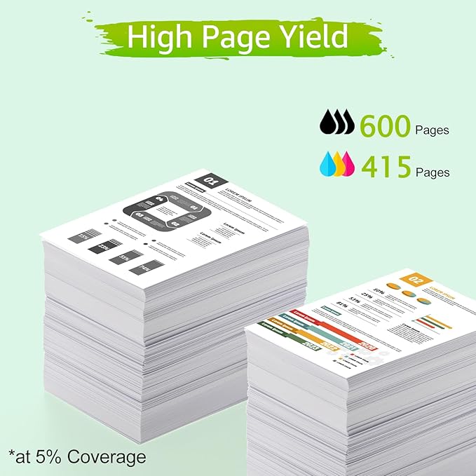 - High-Capacity Printing: Black cartridge yields ~600 pages | Tri-color delivers ~415 pages (5% coverage, A4/Letter). Achieve 40%+ savings compared to original HP cartridges