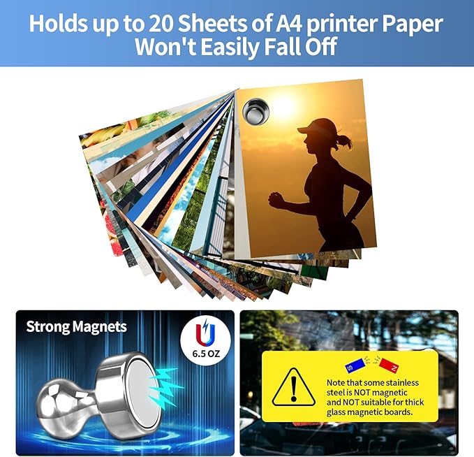 - 🌻【Strong Fridge Magnet】Do not be fooled by these white board magnets, They can hold up to 15 sheets of A4 printer paper at once with just a tiny magnet. Even possible to use them in the kitchen to hold cooking tools that weigh no more than 6.5 OZ and the cooking tools won't easily fall off.
