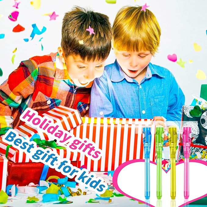 - Party favors for kids: Kids will love these magic pens. Kids like these as spy pens to play different games and fun activities:Such as Surprise birthday parties, or games like revealing a top secret message to their parents or grandparents.also as Birthday Gifts,Halloween Gifts,Easter Day,Valentine’s Day Gift,Christmas Presents for kids and friends.