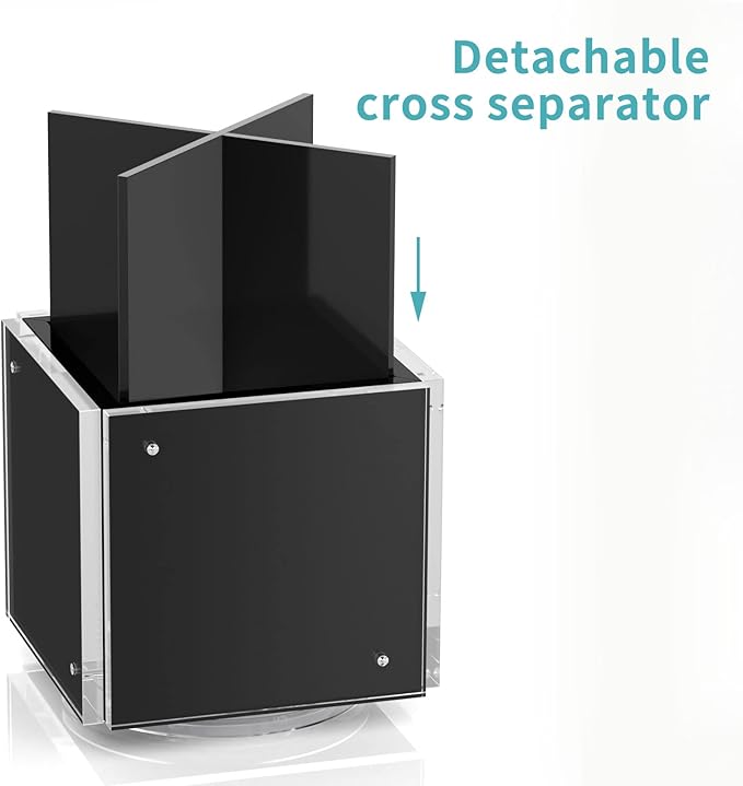 HIIMIEI Acrylic Rotating Pen Holder for Desk, Pencil Holder Picture Frame Holds 4 Family Photos of 4"x4", Desk Pen holder Organizer for Office, Classroom, Home, Kids (Black)