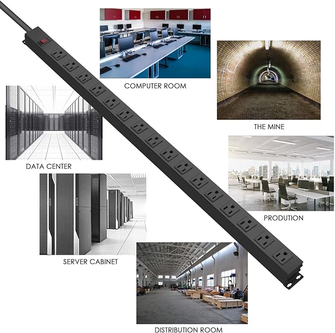 - Wide Spaced Power Strip: 16 wide spaced outlets, the center-to-center distance between AC outlets is about 1.69inch(4.3cm), which is very suitable for large plugs. Connect with 15 ft 14AWG power cord. This long power strip Rating: 15A, 125V, 60Hz, 1875W.
