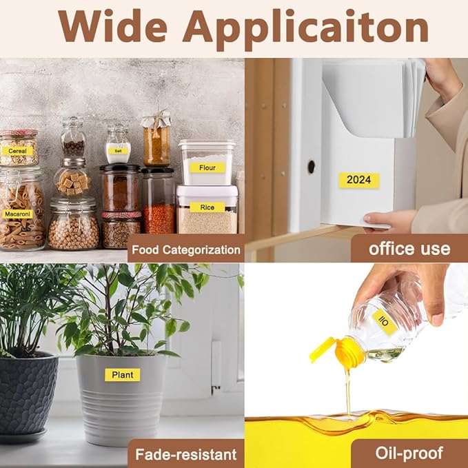 - Size - 1" ( 24mm ) x 26.2' ( 8m ) each 24mm label tape. Color - Black letter on yellow tape