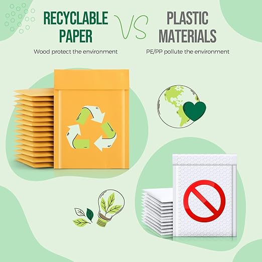- 【Recyclable Material Bubble Mailers】The outer layer of kraft bubble mailers are made of paper, recyclable, FSC compliant, you don't have to be an environmental scientist to make sustainable choices. And the inner layer of kraft paper bags are poly bubble wrap, which can provide cushioning for the contents of the package.