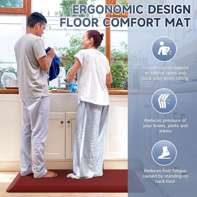 4/5 Inch Thick Kitchen Mat Anti Fatigue Mat Kitchen Rugs Kitchen Decor Non-Slip, Stain Resistant, Waterproof Kitchen Mats Desk Mat for Kitchen, Office, Workshop, Red, 17'' x 60''