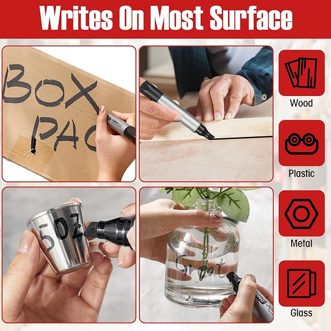 - Chisel Tip Design: The chisel tip design of our thick permanent marker makes them nice for both fine and broad strokes depending on your using needs, convenient and smooth to write