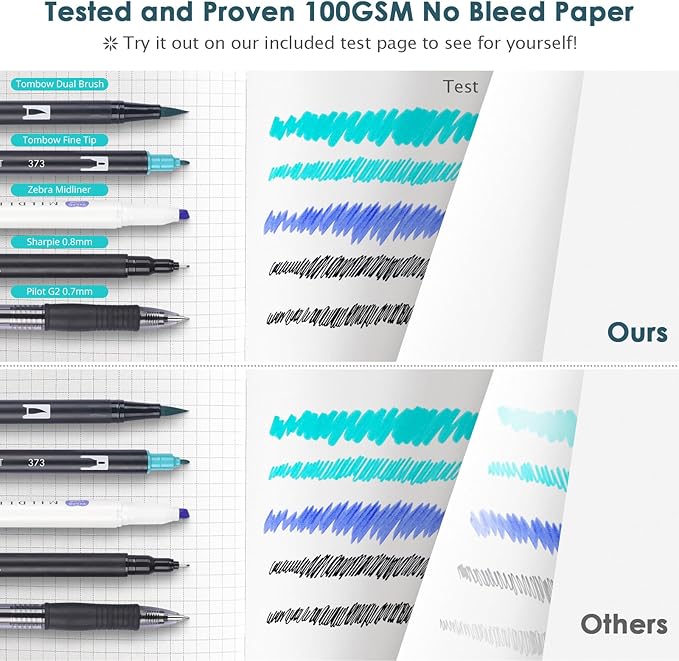 - 【Thick Paper for Writing Without Limits】Large A5 hardcover notebook (5.75"x 8.38"/145mm x 215mm), total 320 pages, includes 312 numbered pages(equal to 156 sheets). 5 x 5mm graph grid paper(5 squares per inch). Our INNOVATIVE PAPER TECHNOLOGY on 100GSM thick paper ensures a perfect canvas for your ideas - no bleed, no ghosting, as confirmed by tests with various pens.