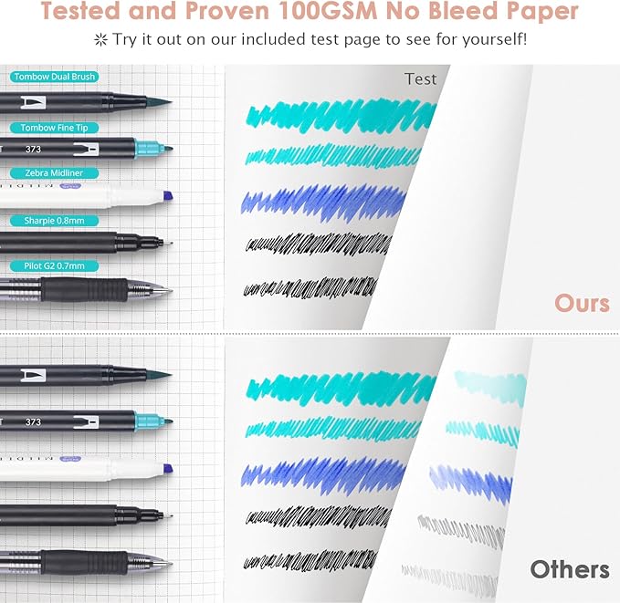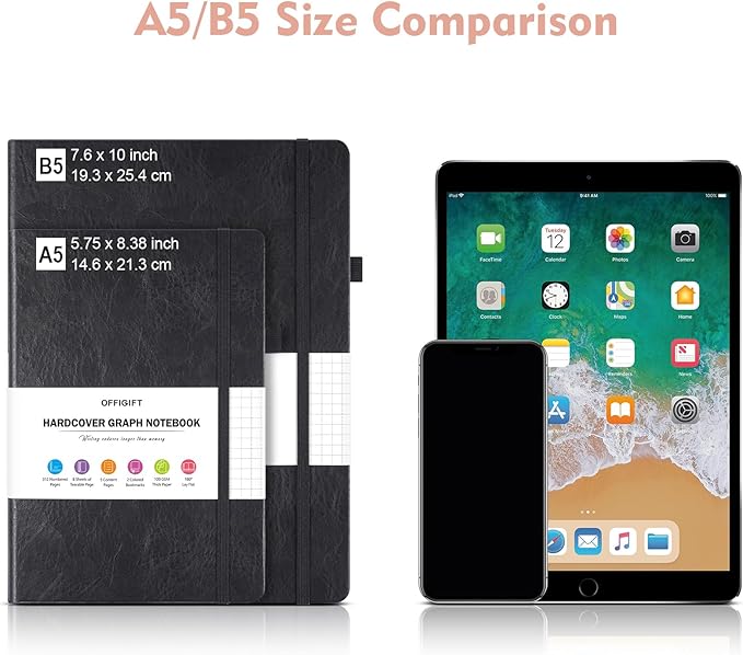 - 【Thick Paper for Writing Without Limits】Large A5 hardcover notebook (5.75"x 8.38"/145mm x 215mm), total 320 pages, includes 312 numbered pages(equal to 156 sheets). 5 x 5mm graph grid paper(5 squares per inch). Our INNOVATIVE PAPER TECHNOLOGY on 100GSM thick paper ensures a perfect canvas for your ideas - no bleed, no ghosting, as confirmed by tests with various pens.