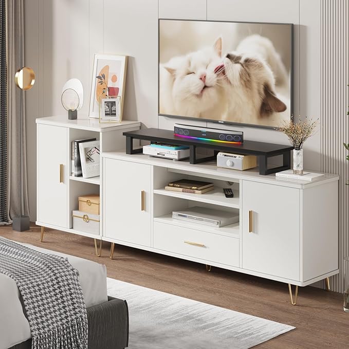 - 【Space Saving】Raise your tv, unobstructed large space underneath can be nice for sound bar, controllers and cable tv box, satellite receiver, gaming consoles such as PS4, Xbox. Get rid of the messy table, you can keep clean and tidy within seconds.