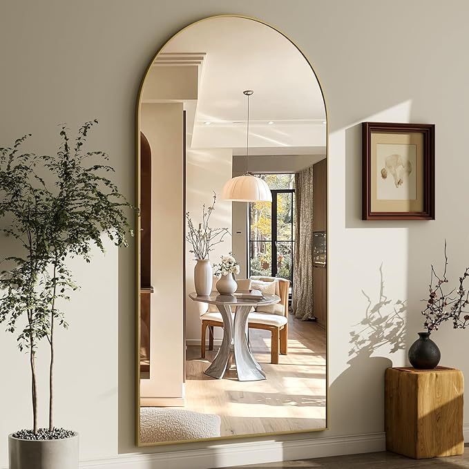 - EXTRA LARGE FLOOR MIRROR-The arched full length floor mirror features a modern style that can complement any type of room decor, adding a touch of elegance to your space while also making it feel more open and bright. With its 71" length and 30" width, this mirror provides a full body view, allowing you to check your outfit and overall appearance from head to toe before you head out the door