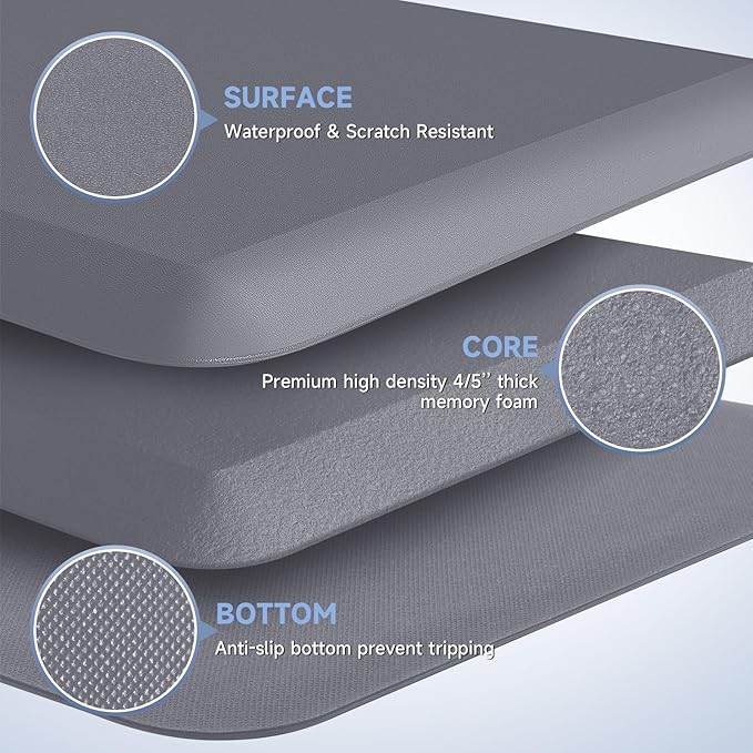 - 【Thicker Mat】The StepRite kitchen mat is made of 4/5 inch thick memory foam for better support and comfort when standing. Suitable for kitchen, office, laundry room or any high-traffic area.