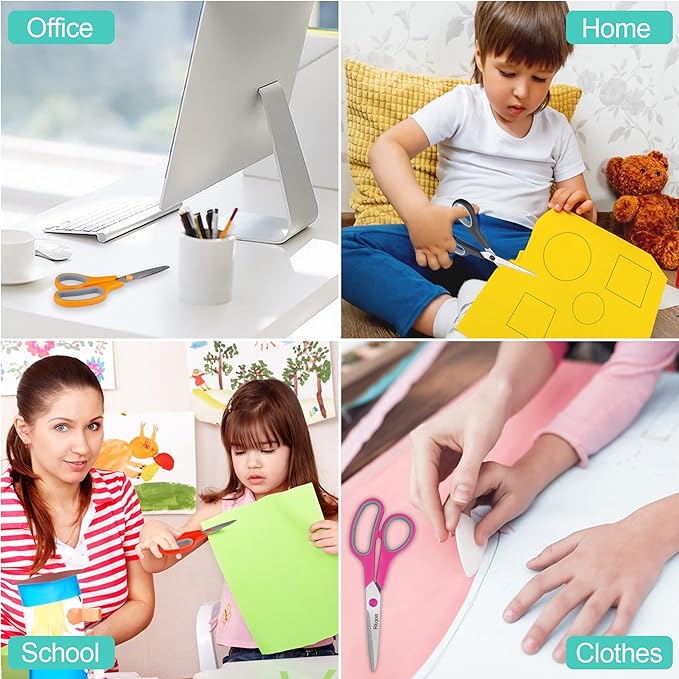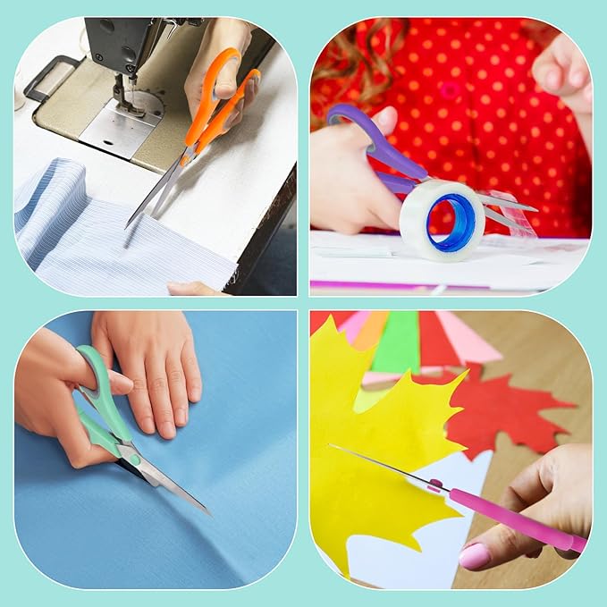 - Multipurpose/ Vibrant 6 Colors Pack Scissors: Classic Colors: Black, Red. Special Colors: Aqua, Pink, Purple, Orange. Different Colored Scissors, Can Be Used In Different Places. Ease to holding, work perfectly for their crafting for many different tasks. Comfortable to use in: Office, School, House Household, High/Middle School Students Teacher, Sewing Fabric Art Craft DIY, laundry room, bathroom, garage, kitchen or other occasions supplies.