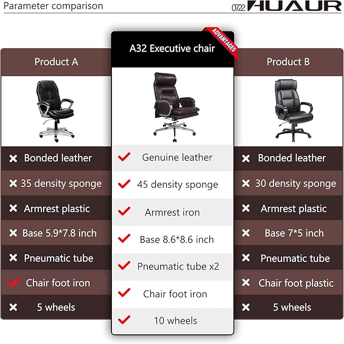 - GENUINE LEATHER FABRIC: The contact surface is 100% cow leather, the texture is clear and natural, the genuine leather thickness is 3.5mm, and it has a faint smell of cow leather. We use chairs every day to work, and wear is inevitable. The biggest advantage of natural leather is wear resistance and breathability