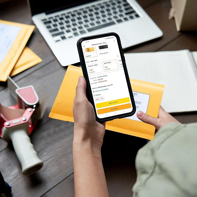 Fuxury Kraft Bubble Mailers 4x8" 500Pack Eco-Friendly Padded Envelopes Thick Bubble Envelopes Usable Size 4x7" Waterproof Cushioned Padded Mailers Packaging for Small Business #000 Yellow