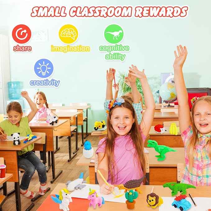 - ENDLESS PLAY & LEARNING:These takeapart erasers aren’t just stationery – they’re fun toys in disguise! Kids develop fine motor skills while rebuilding 3D erasers into zoo animals or fantasy creatures. Build a desk pets for kids classroom community by letting students collect and trade eraser pals. Teachers adore using them as mini erasers for kids bulk classroom incentives – whether for homework rewards or calming fidget tools