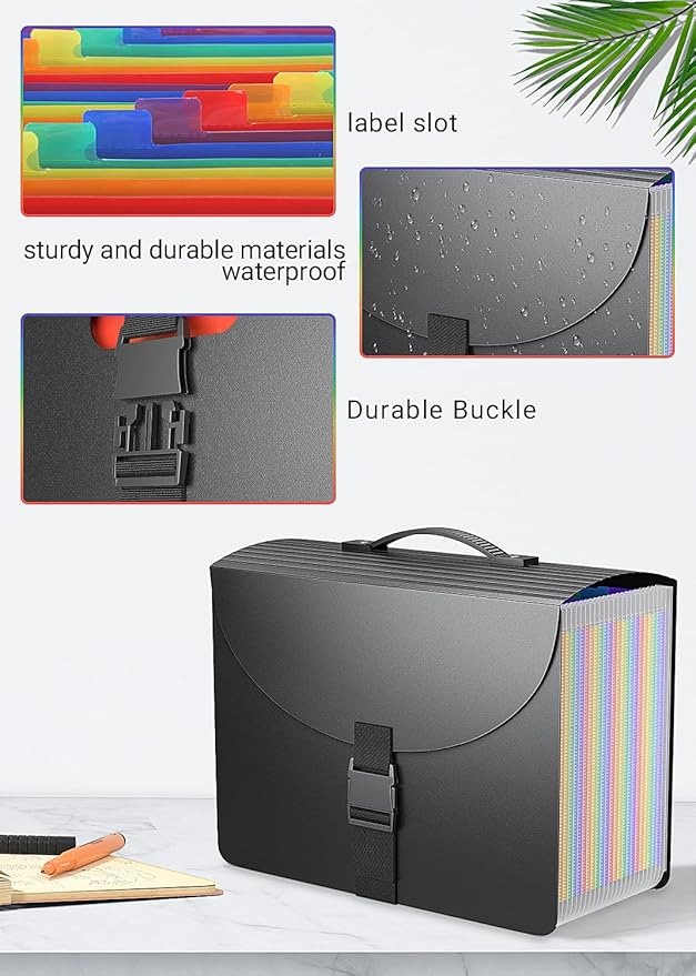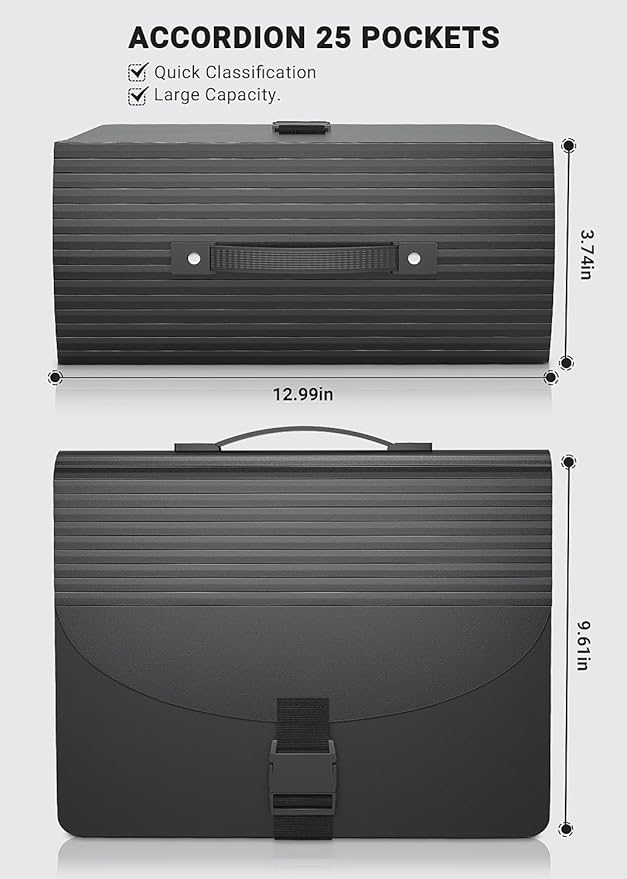 - ✔【UPGRADED】This innovative file organizer,designed with a durable plastic handle and a fashion buckle, successfully upgraded from traditional expanding file folders. More easily take all important documents away to any time and anywhere when hold a good amount of documents, the buckle is very good to protect the safety of files.