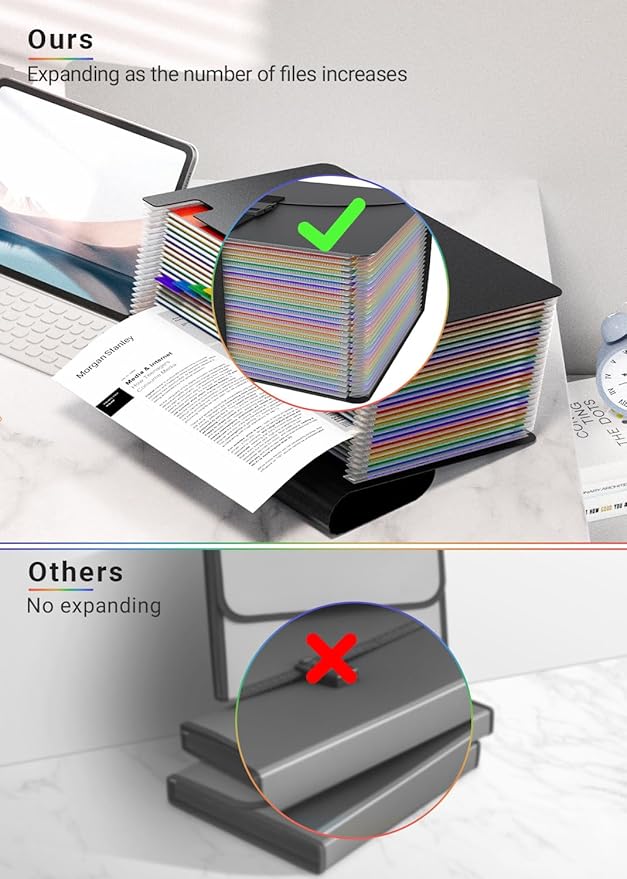 - ✔【STURDY MATERIALS】Expandable file folder are made by high quality polypropylene and polyester, 20% and more thicker than other file organizer, it can stand on the desktop independently, no easy to be broken and deformed. 100% Waterproof, Non toxic, Non Odor, Anti-wear, tear and Moisture resistant.