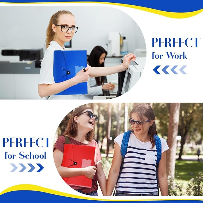 - Secure Transportation: with an elastic buckle design, these plastic file folders incorporate a flap and bungee cord closure; This feature ensures that your files remain securely in place during transportation, preventing any accidental loss; You can confidently carry your documents without worrying about their safety