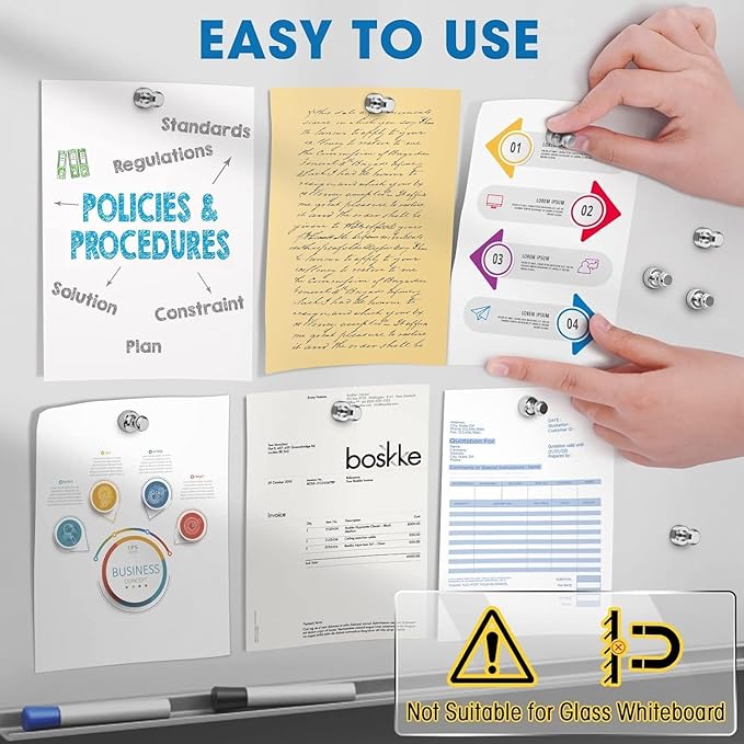 - 【Versatile and Powerfull】These magnetic push pins are highly versatile and offer strong adhesion, securely holding up to 12 sheets of paper or other lightweight items on magnetic surfaces.