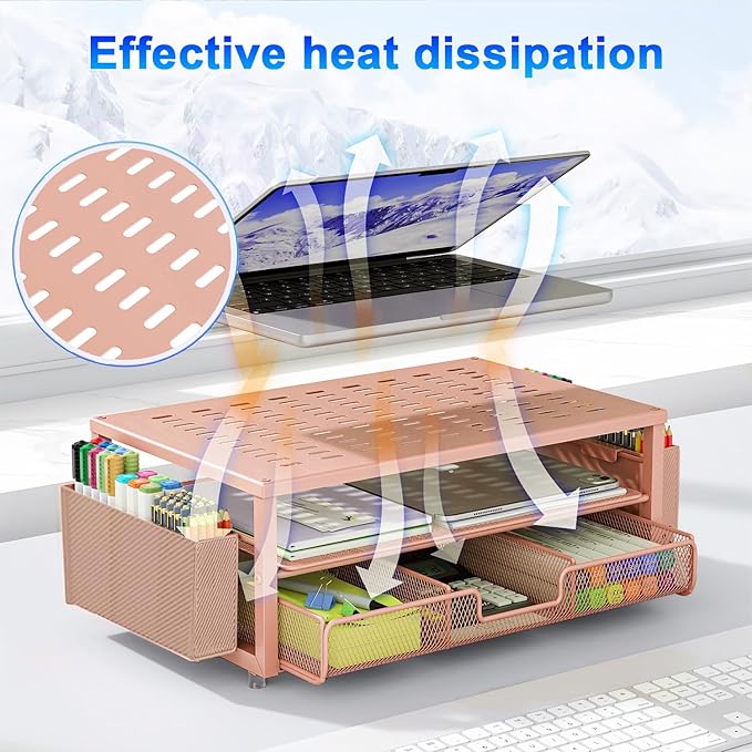 - 【Unique Desk Decor】: The monitor stand has a classic rose gold coating, adding elegance and modernity to your office while being sturdy and practical. allowing you to work in a cozy and tidy environment with greater comfort and efficiency.