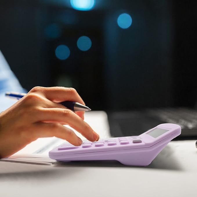 - Perfect Purple Office Supplies, This purple calculator is designed for many occasions, business, office, home, basic budgeting, school, and more. Use it to assist your personal finance or just a quick calculation session. You can also send them as practical gifts to friends, students and more.