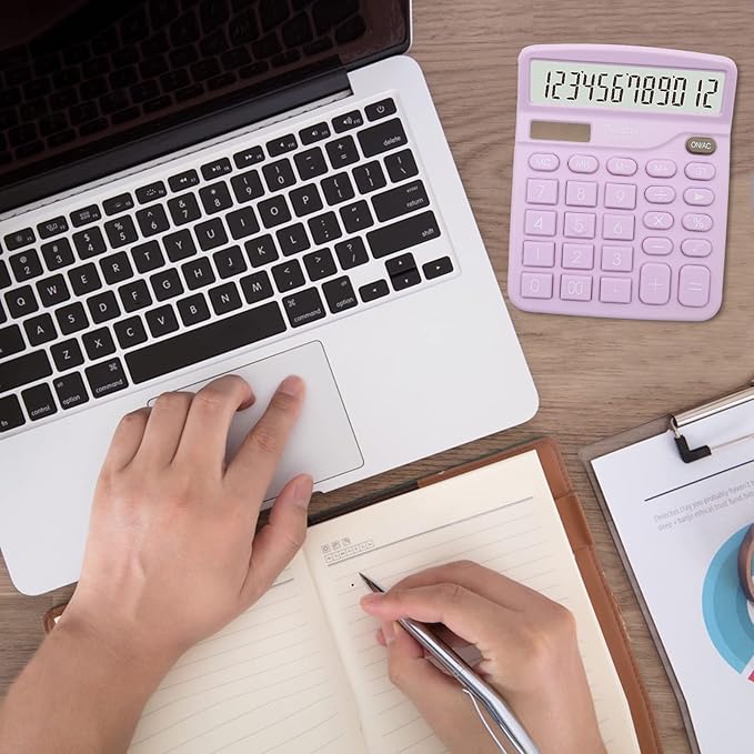 - Large Display, Purple desktop calculator 12 digit with large LCD display and sensitive buttons. Your calculation process will be faster and smoother with this calculator’s responsive buttons, makes it easy to read from afar, and it’s aesthetically pleasing.