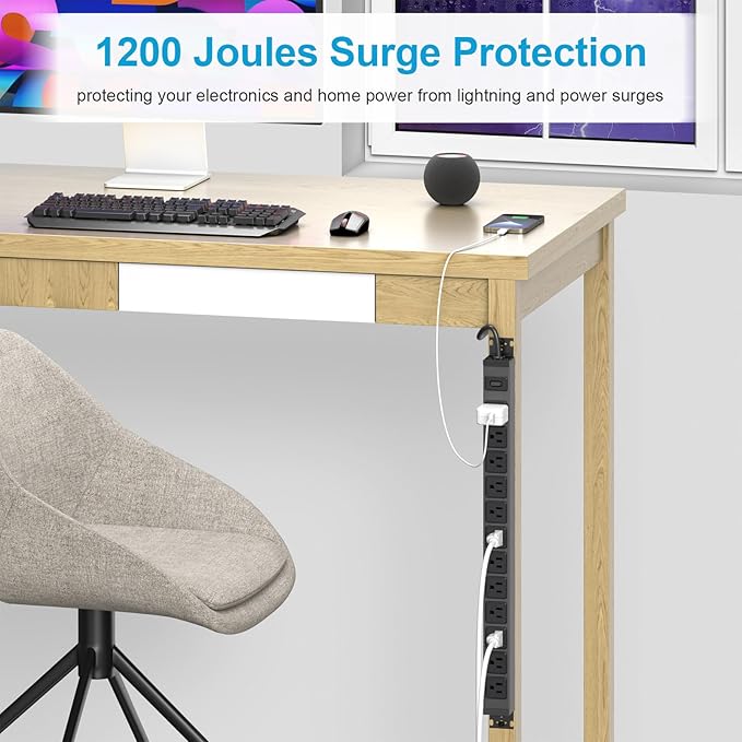 - Industrial Surge Protector: This power strip comes equipped with 1200J surge protector that safeguards your devices from sudden power spikes and fluctuations. The 15ft power cord provides sufficient reach to connect the power strip to a nearby outlet without any limitations. Surge protection and multiple outlets allow all devices to be plugged in with confidence.