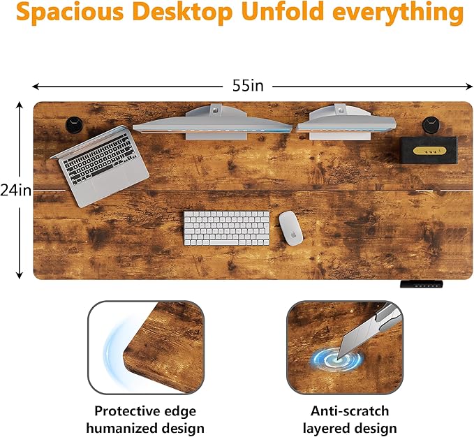 - 【Ergonomic Home Office Desk】-Say goodbye to back and neck pain from prolonged sitting! Our electric standing desk lets you effortlessly switch between sitting and standing at the touch of a button, keeping your body active and your mind sharp