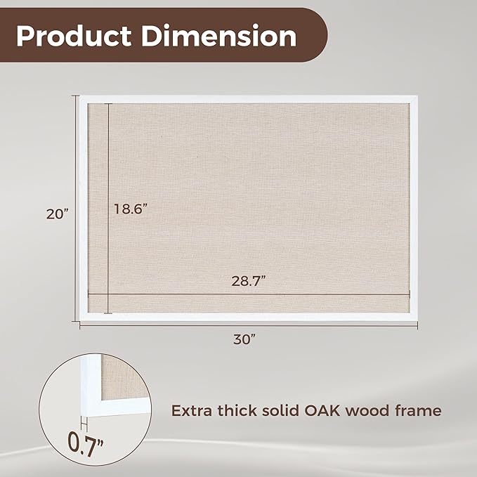 - Size: The 20x30 inch bulletin board offers ample display space, and comes with 10 beautifully crafted wooden push pins for showcasing your favorite items with style.