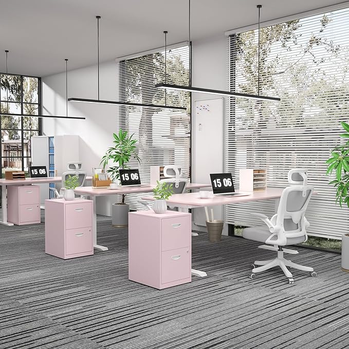 2 Drawer File Cabinet with Lock,Pink Metal Office Drawers Filing Cabinets for Home Office, Two Drawer Under Desk File Cabinet for Hanging Letter,Easy Assemble