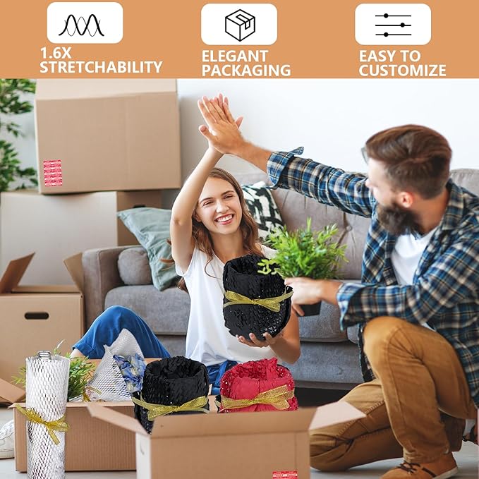 Honeycomb Packing Paper, 12" x 200' Packing Paper Substitute Alternative for Bubble Cushioning Wrap for Moving Shipping Packaging, Recyclable Moving Supplies Bubble Packing Wrap Roll-Black
