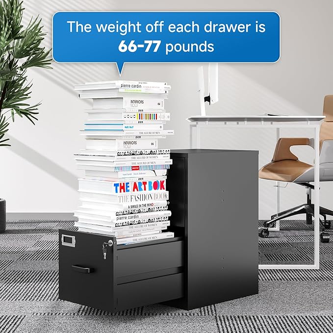- 【HIGH CAPACITY】This vertical file cabinet for home office has 2 drawers of large storage space, fully retractable ball bearing drawer slide rails for easy access to all folders, file drawers with adjustable hanging rods can hang letter size hanging folders to let your files Well organiz