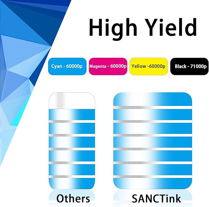 - 4.High Yield: 71000 pages in black, 60000 pages in color. (at 5 percentage coverage of A4 paper)