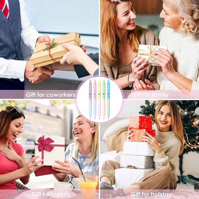 - 【Birthday Gifts for Men Women】With the retractable design, you can easily click the pen cap, and the tip will extend or retract automatically, preventing ink from accidentally staining your belongings, books, or pockets. The sleek, stylish barrel gives the pen a modern, professional look. The soft silicone grip brings a soft touch feeling which makes each gel pen comfortable to hold for long writing without sore, making it a good tool for works, back-to-school supplies, college and preppy stuff.