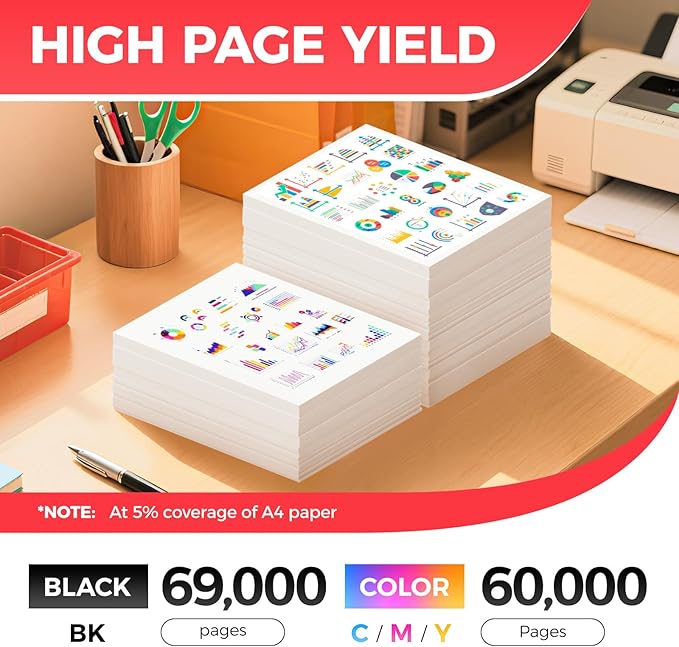 - High-Yield: up to 28,000 pages per GPR-55 Black and 25,500 pages per GPR-55 Color (Total 104,500 pages, A4 5% Coverage),with High Yield Version GPR55 GPR-55 toner Cartridges.