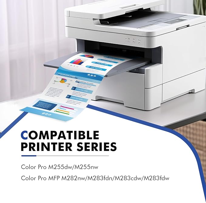- Compatible for printers: color pro mfp m283fdw m283cdw m283fdn printer, color pro mfp m282nw printer, color pro m255dw m255nw printer