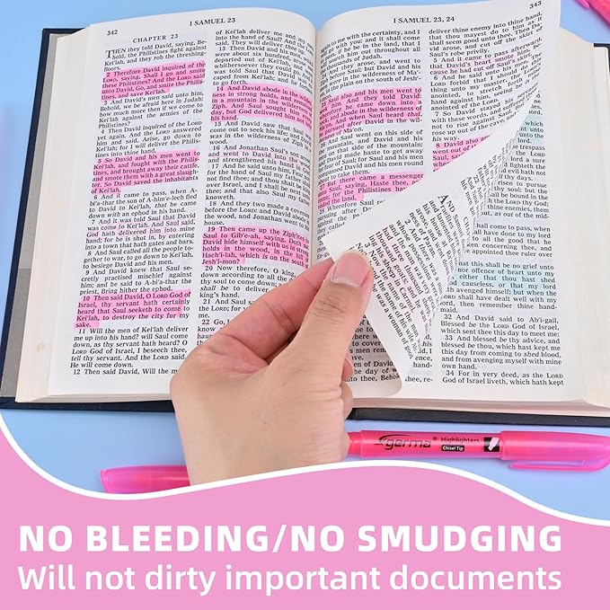 - TRANSPARENT INK: The translucent ink of this pink highlighter set allows you to emphasize key points clearly without obscuring the text, that remain readable, no-bleed,and guaranteeing long-lasting text.