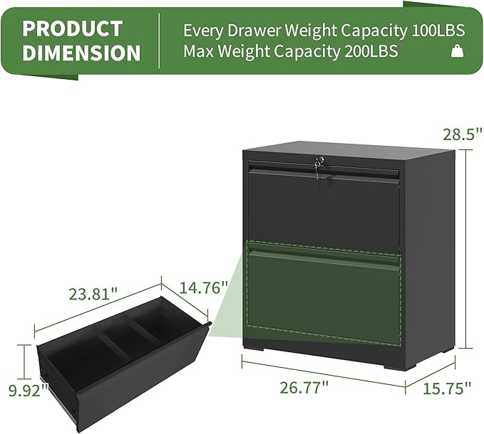 - 【Full Extension Drawers】 This premium office file cabinet features ball-bearing slides with full-extension capability, allowing drawers to open completely for full access to stored documents. It's an ideal choice for home offices, medical facilities, law firms, and any environment requiring reliable document protection and user safety.
