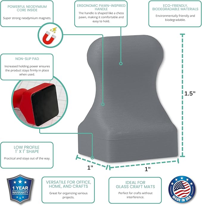Glassboard Studio MiniPawn Magnet - Strong Neodymium Rare Earth Magnets for Fridge, Whiteboard, Locker & Magnetic Glassboards - Ideal for Crafting & Office Use - Strong Fridge Magnets (Steel Gray, 2)