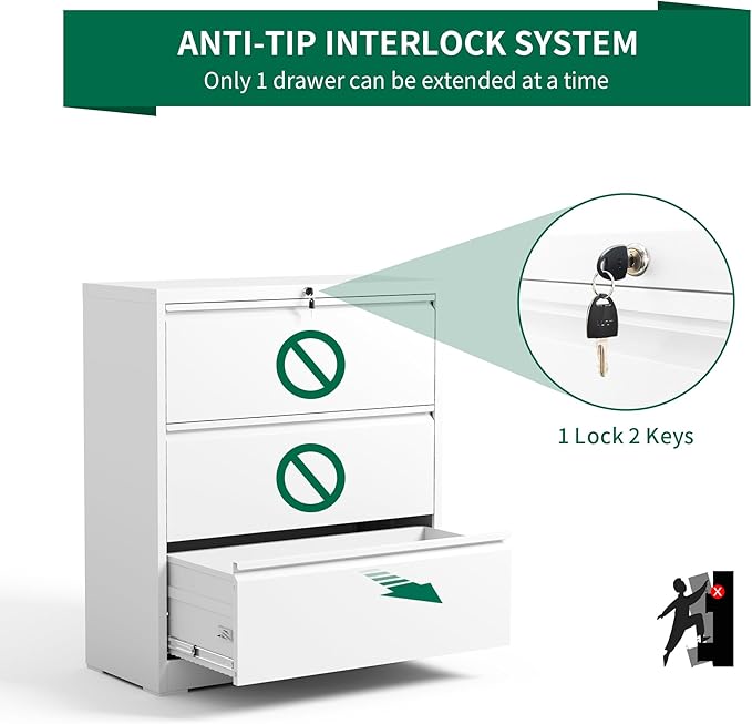 - 【Locking Cabinet for Security】This 2 drawer file cabinet with lock has an anti-tip design, which ensures that only one drawer can be opened at a time, preventing tipping and protecting your safety. The upgraded interlock system with 1 lock and 2 keys keeps your important documents safe.